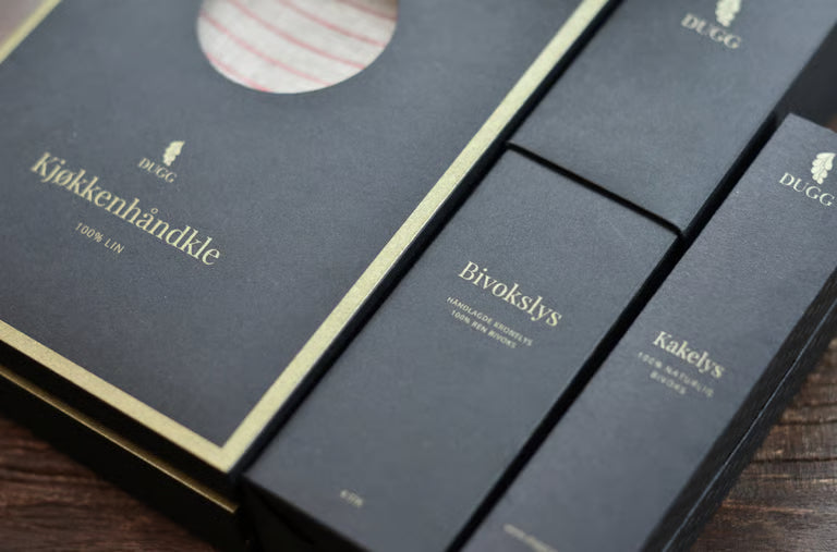 Alle produkter leveres i papiremballasje utviklet spesielt for Dugg-merket. Emballasjen er plastfri, miljøvennlig og designet med tanke på estetikk og funksjonalitet.