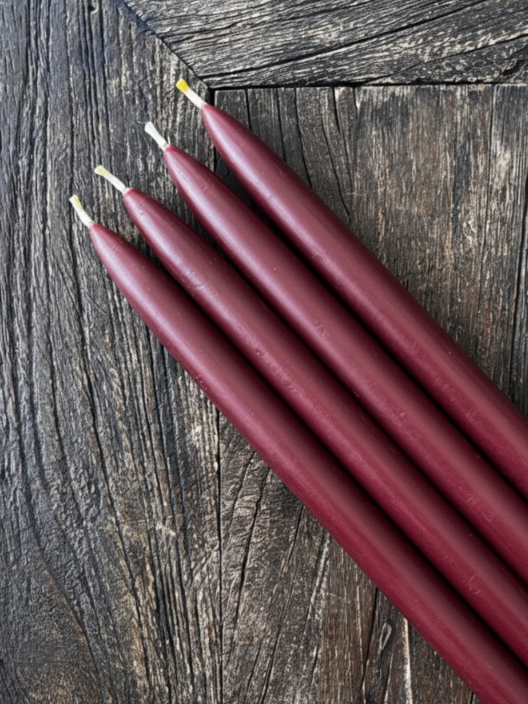 Kronelys av bivoks – 4 stk | Dyp rød / burgunder