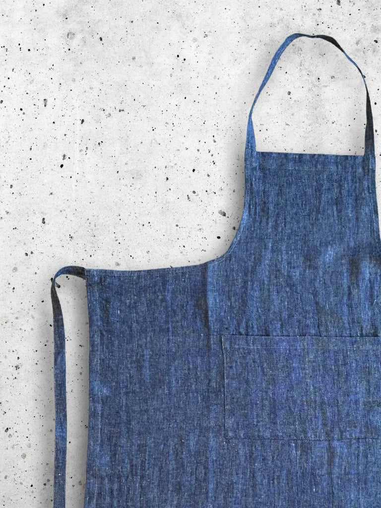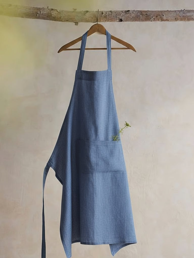 Dette forkleet blir en uunnværlig hjelper på kjøkkenet. Det er sydd i 100 % naturlig, vasket lin som er slitesterkt, lett å stelle og langvarig i bruk. Lin absorberer raskt og blir mykere for hver vask.