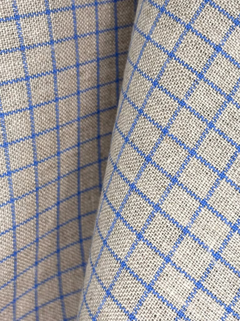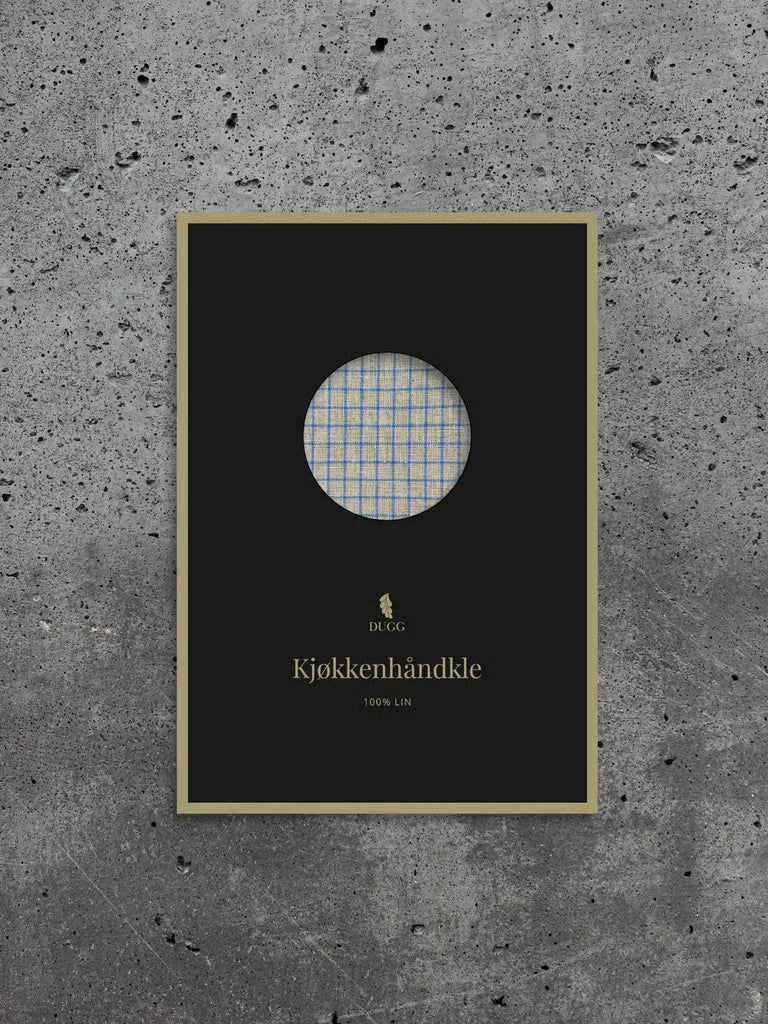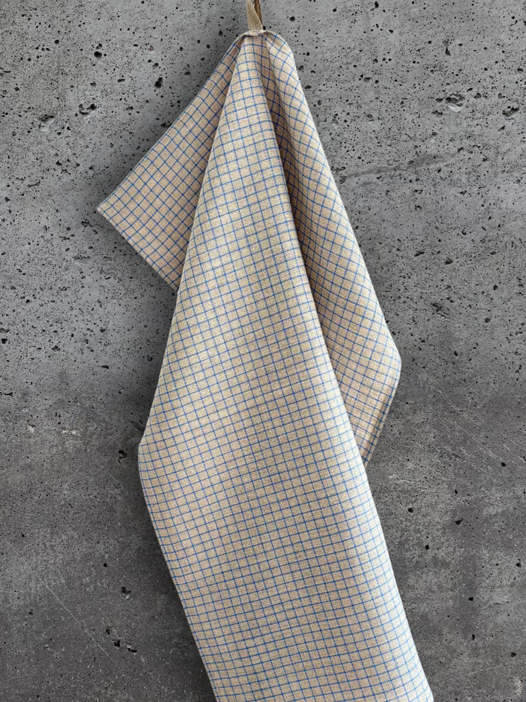Kjøkkenhåndkle i naturfarge med små, blå ruter