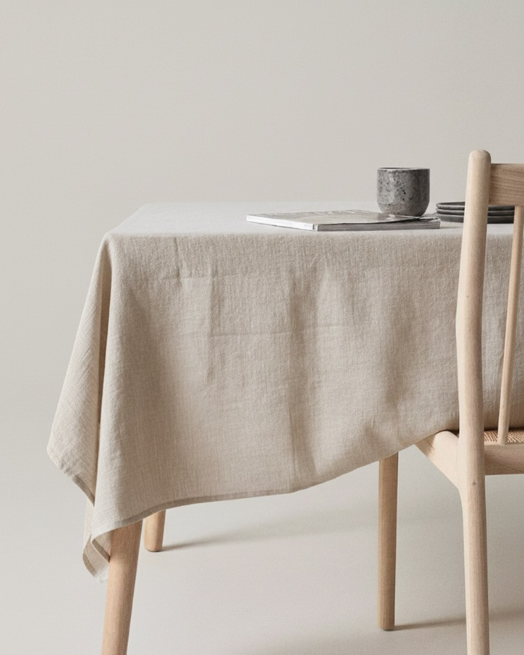 Denne klassiske duken er laget av 100 % europeisk lin og skaper en varm og sofistikert stemning til både hverdagsmåltider og festlige anledninger. Med sitt naturlige uttrykk og tidløse design passer den sømløst inn i både moderne og tradisjonelle hjem.