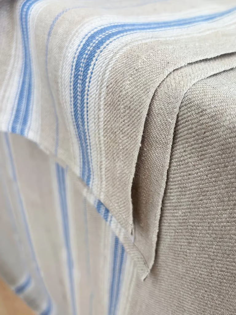 Farge: Natur med blå striper (kan variere noe på grunn av naturlige linfibre og lysforhold)